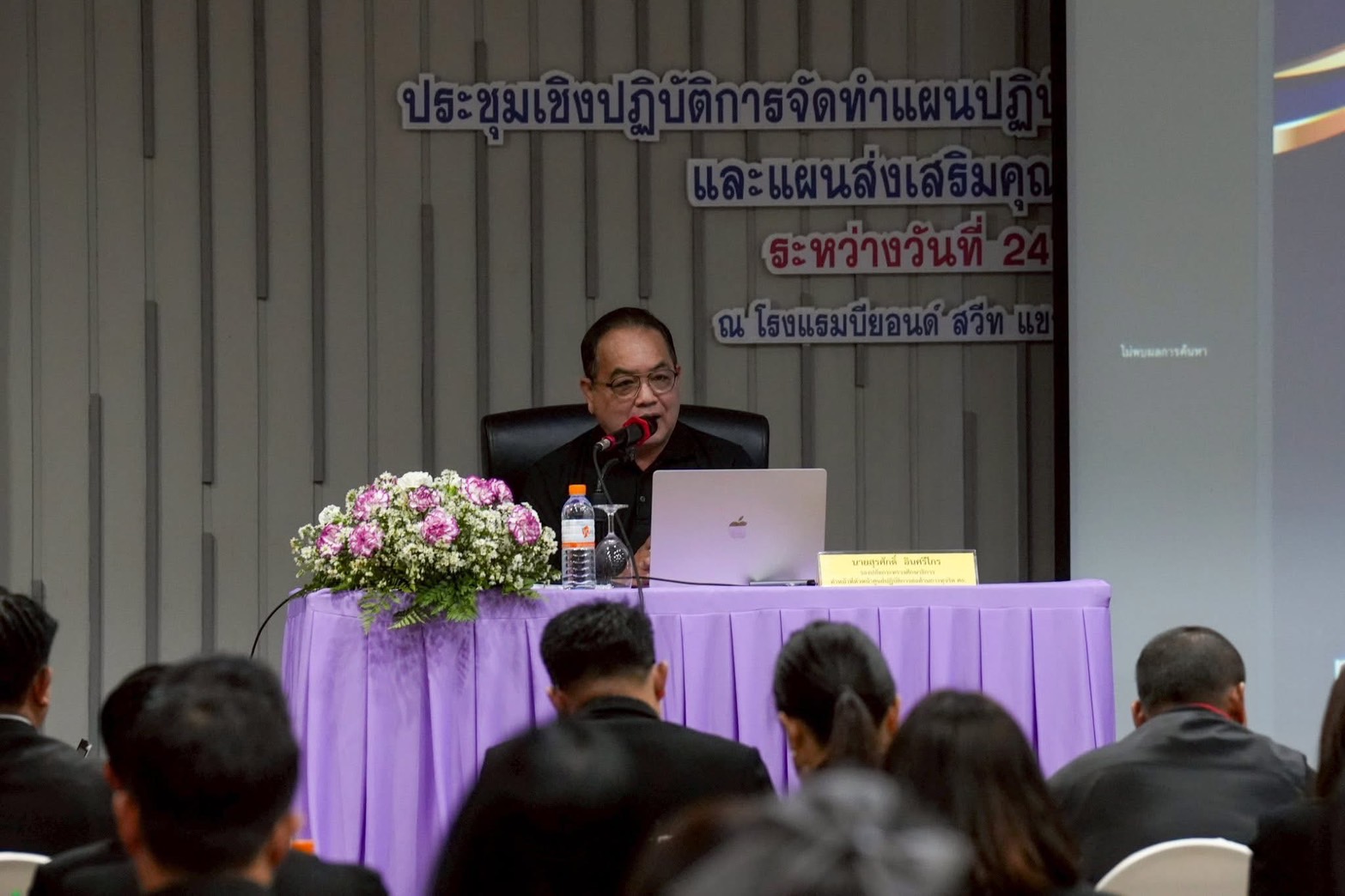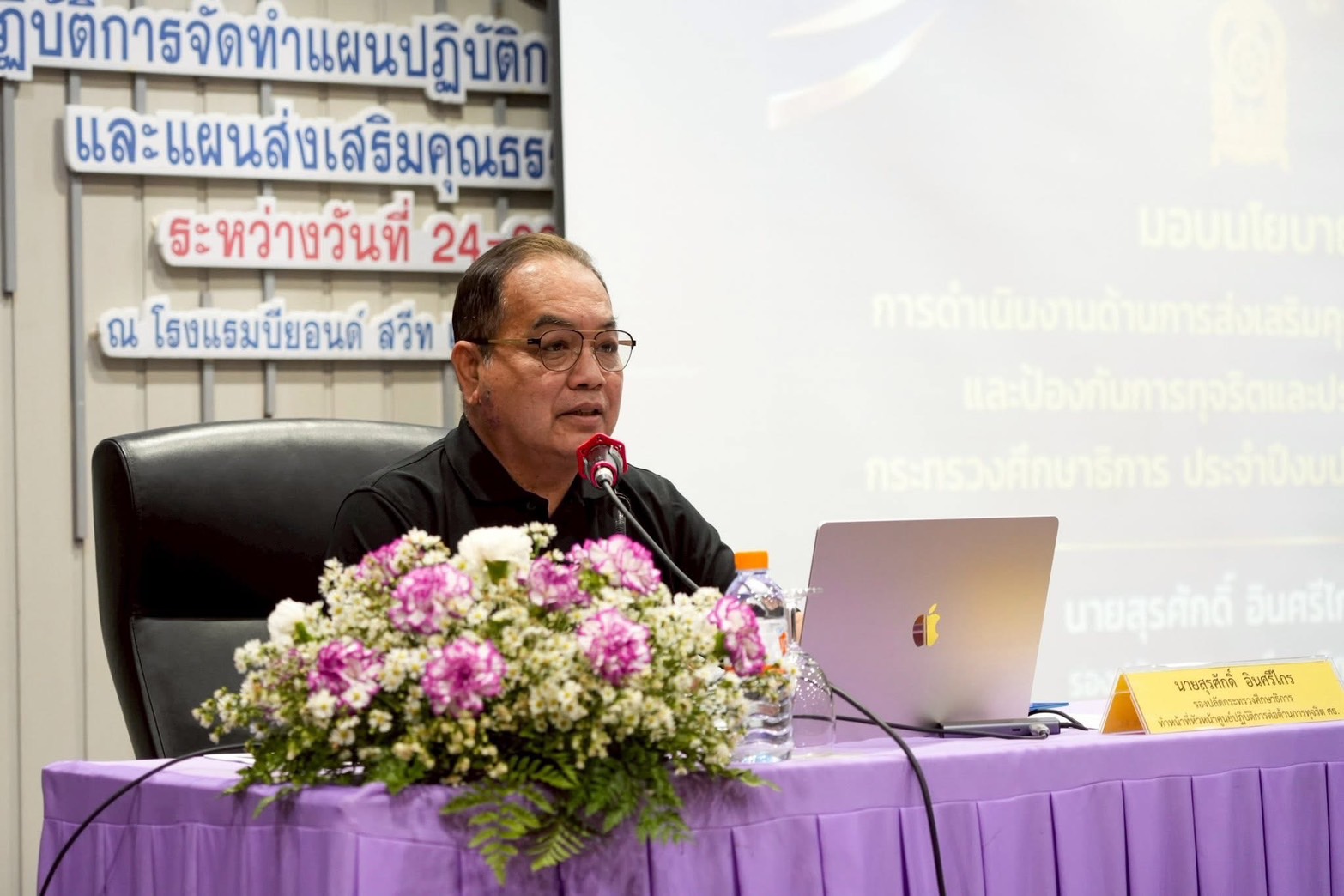 วันที่ ๒๕-๒๖ พฤศจิกายน ๒๕๖๘ นางนริทร์รัชต์ สีแก้วน้ำใส ศึกษาธิการจังหวัดสมุทรปราการ มอบหมายให้ นายณัฐวุฒิ เพริดพราว นักทรัพยากรบุคคลชำนาญการพิเศษ ผู้อำนวยการกลุ่มบริหารงานบุคคล ร่วมประชุมเชิงปฏิบัติการจัดทำแผนปฏิบัติการป้องกันการทุจริตและประพฤติมิชอบ และแผนส่งเสริมคุณธรรม กระทรวงศึกษาธิการ ทั้งนี้ มีบุคลากรในสังกัดเข้าร่วมประชุมในครั้งนี้ จำนวน ๑๒๐ คนโดยมี นายสุรศักดิ์ อินศรีไกร รองปลัดกระทรวงศึกษาธิการ เป็นประธานเปิดการประชุมณ โรงแรมบียอนด์ สวีท บางพลัด กรุงเทพมหานคร