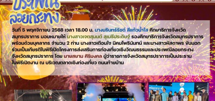 ร่วมเป็นเกียรติในพิธีเปิดโครงการส่งเสริมการท่องเที่ยวเชิงวัฒนธรรมและประเพณีลอยกระทง จังหวัดสมุทรปราการ